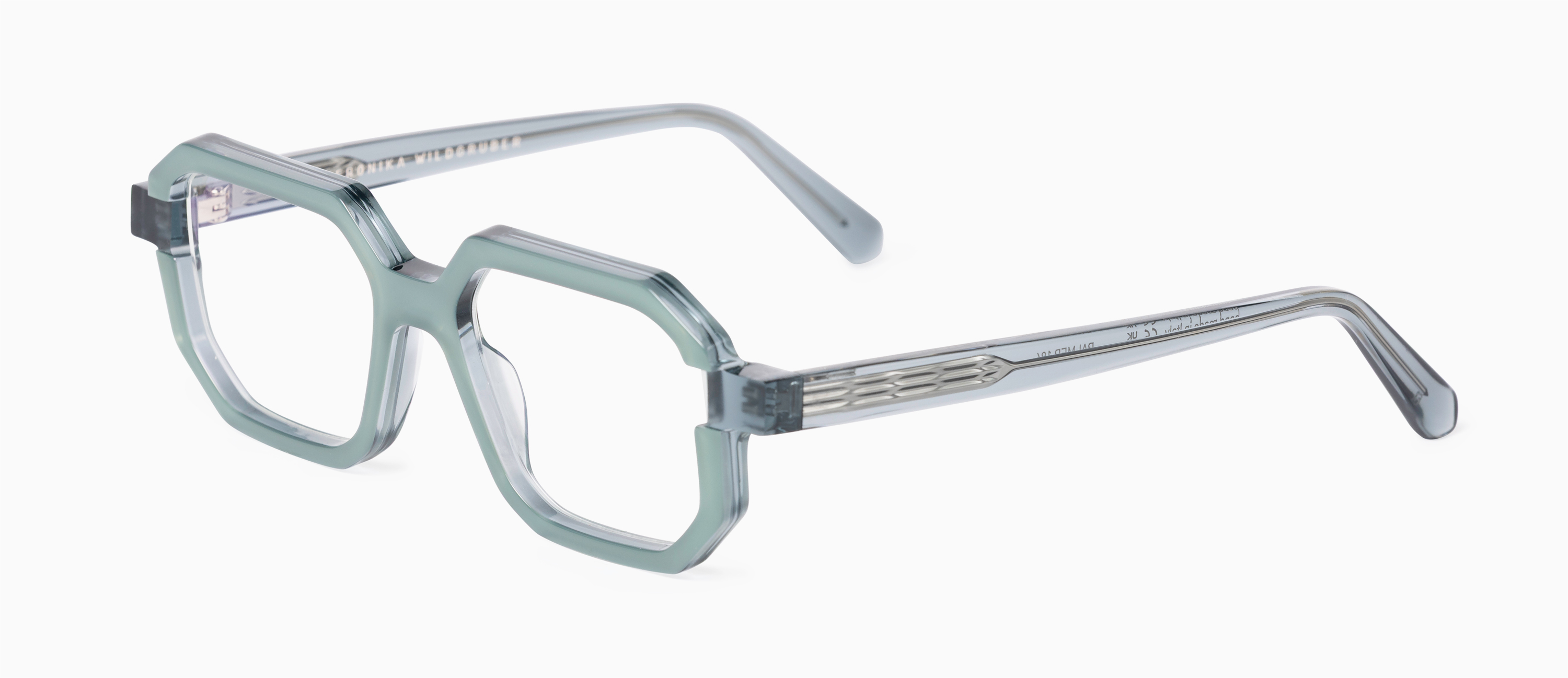 This is a striking acetate frame that has been precisely sculptured to accentuate clean, defined edges and bold geometry. Reminiscent of receding blocks, the temples are shifted outwards and to the back, revealing an intriguing gap that gives the frame a dynamic, architectural look.